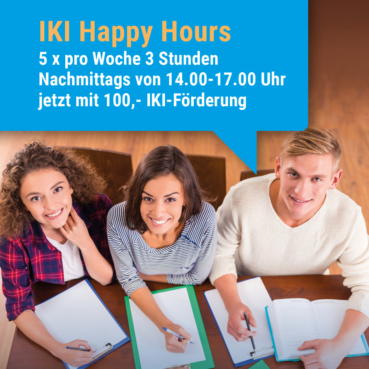 Mit den IKI Happy Hours Programm kannst du unsere renommierten Deutschkurse am Nachmittag zu einem besonders günstigen Preis besuchen.