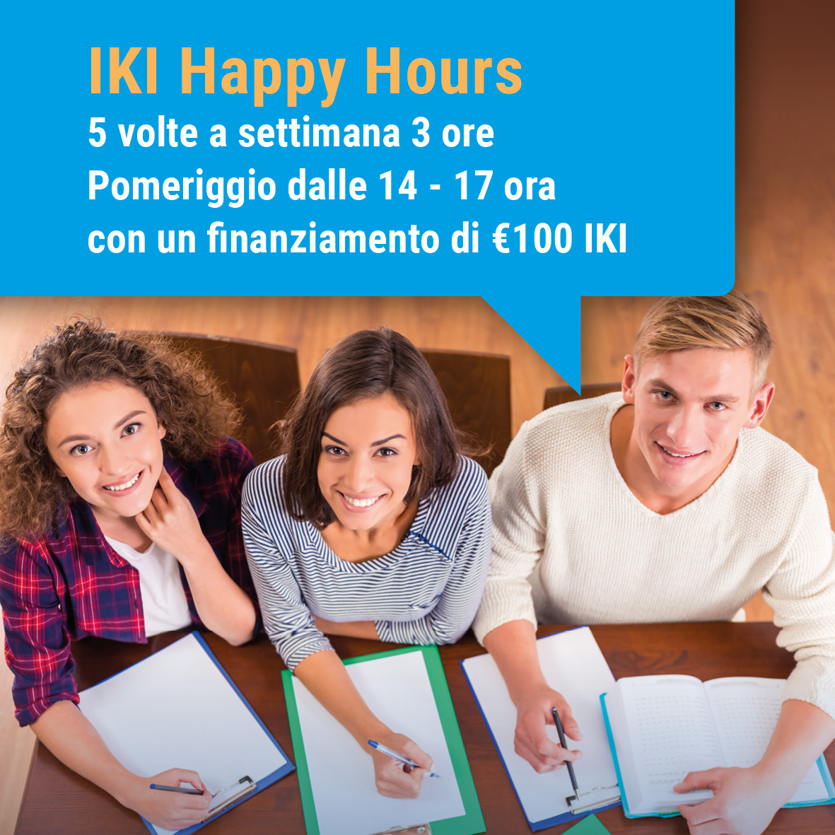 Con il programma IKI Happy Hours frequenti il nostro corso di tedesco al pomeriggio a un prezzo molto vantaggioso.
