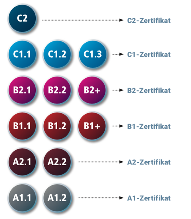 Wir bieten Deutschkurse für Anfänger und Fortgeschrittene in allen 13 Kursstufen (Sprachniveau A1, A2, B1, B2, C1, C2). Der Stufenplan orientiert sich am Europäischen Referenzrahmen.