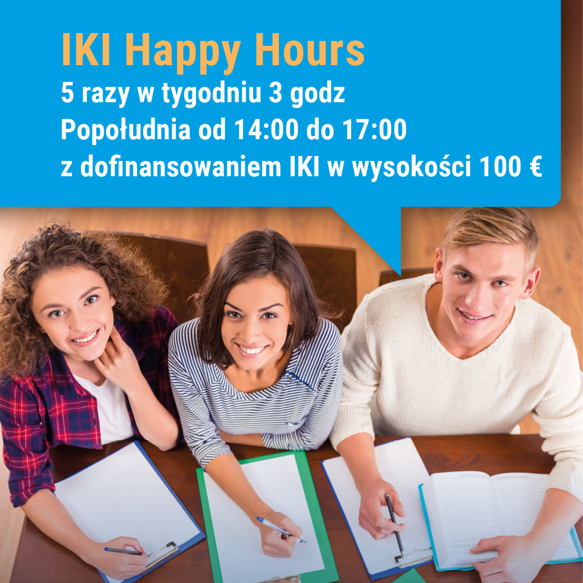 Nasz program IKI Happy Hours to popołudniowy kurs języka niemieckiego w specjalnej niskiej cenie.